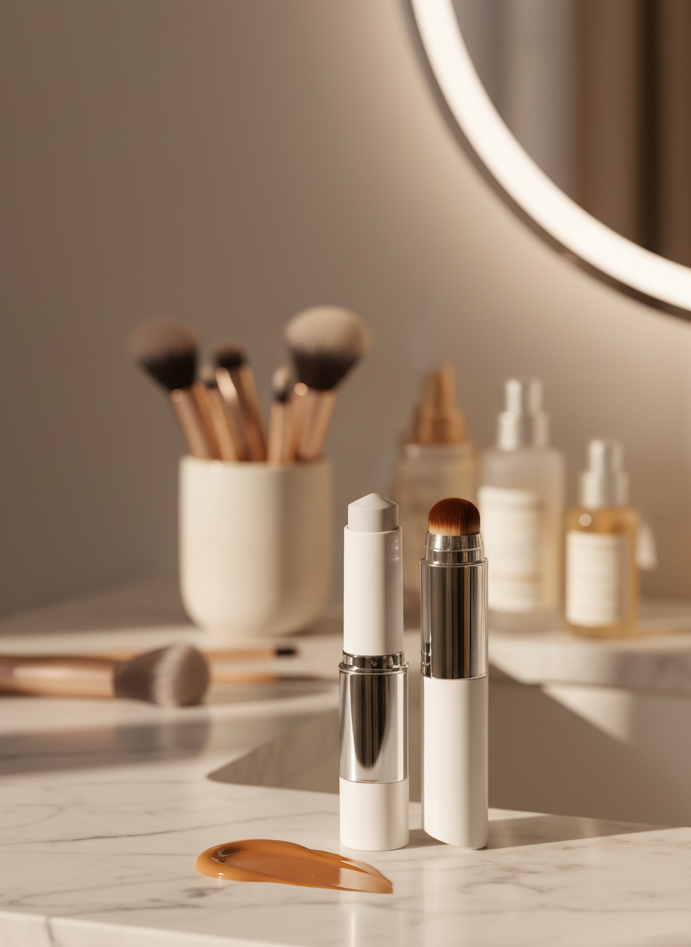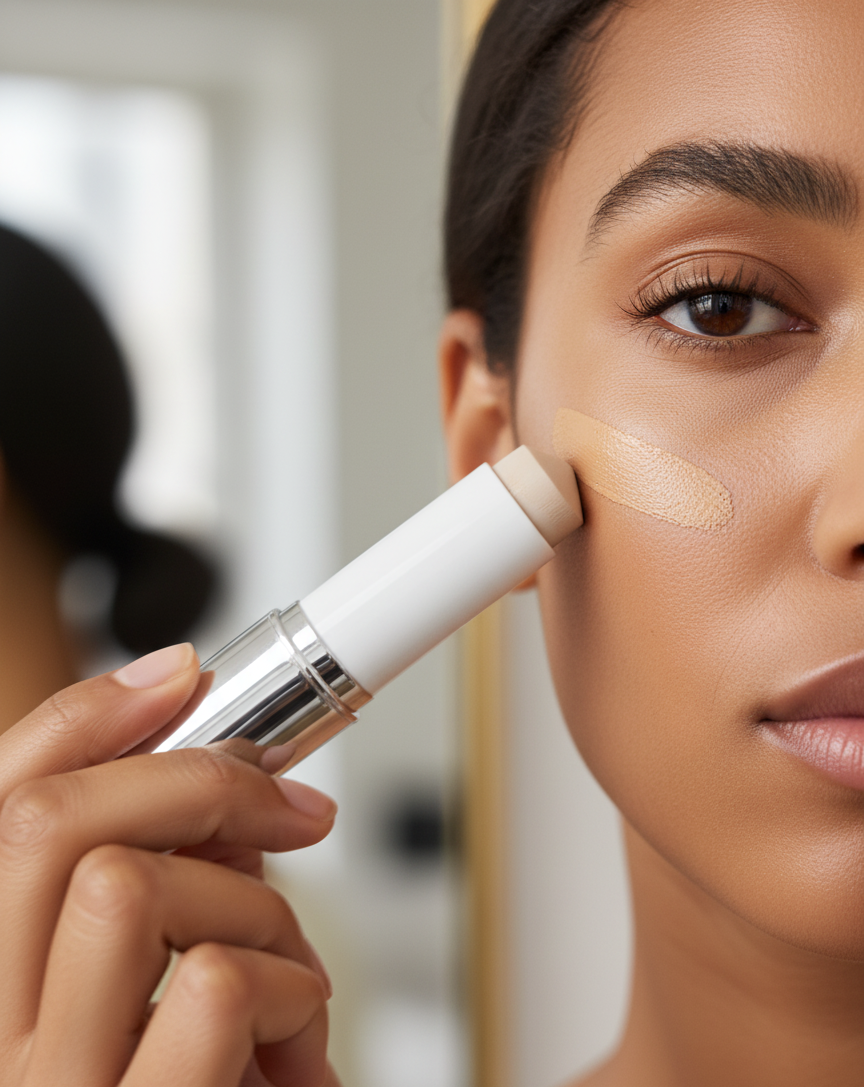 Simply roll the applicator gently over your face, starting from the center and blending outward for even coverage.